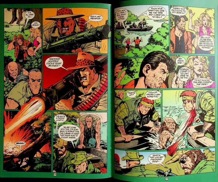 Jody and T.C., those rascally, obnoxious, animal-loving hicks from Preacher: Until the End of the World (they were the monstrous henchmen employed by Jesse’s Gran’ma) are back in action in this farcical, fast-moving and violent action-movie parody cooked up by Garth Ennis and Carlos Ezquerra. Tomi and Cal are an odd couple on the run…