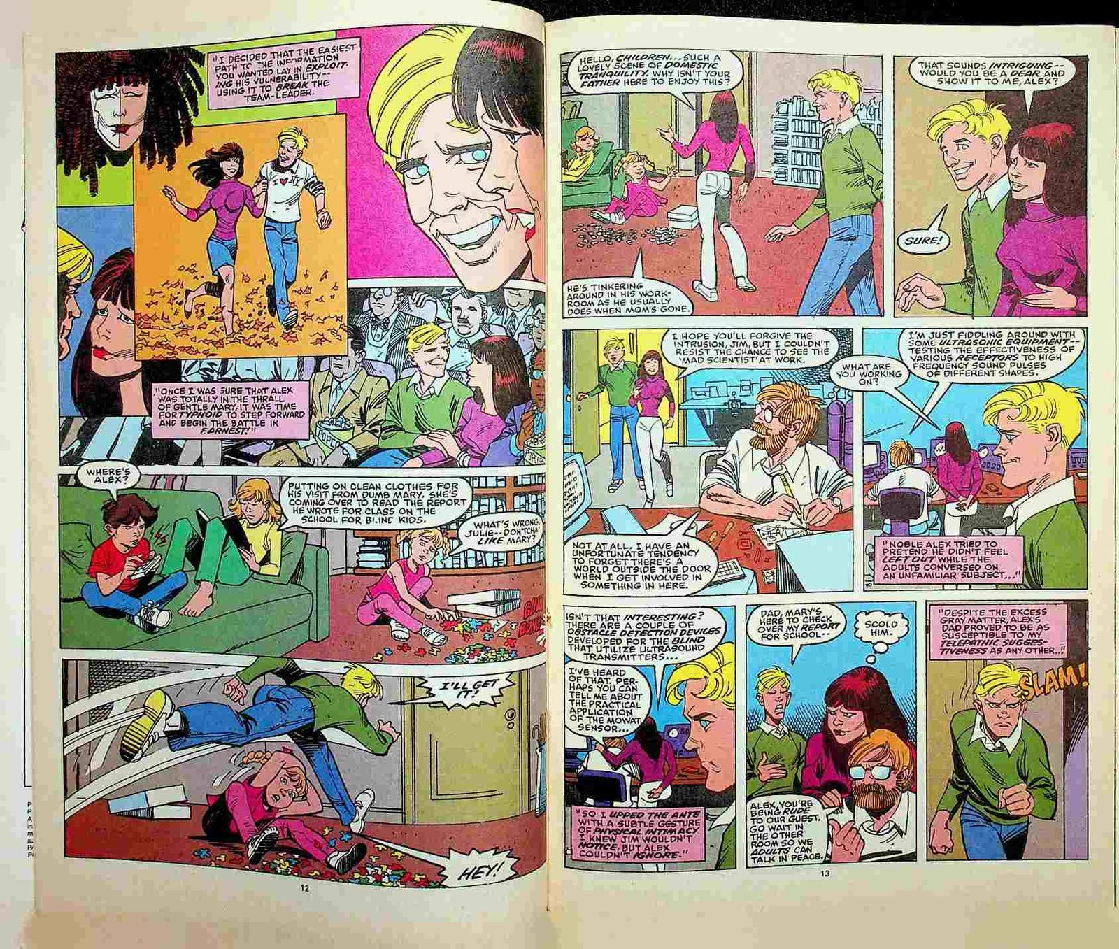 Cover art by Bret Blevins. “Chinks in the Armor”, script by Terry Austin, art by Ernie Colon, Kingpin has Typhoid masquerade as a teacher for the blind to disrupt the Power Pack, Acts of Vengeance crossover.