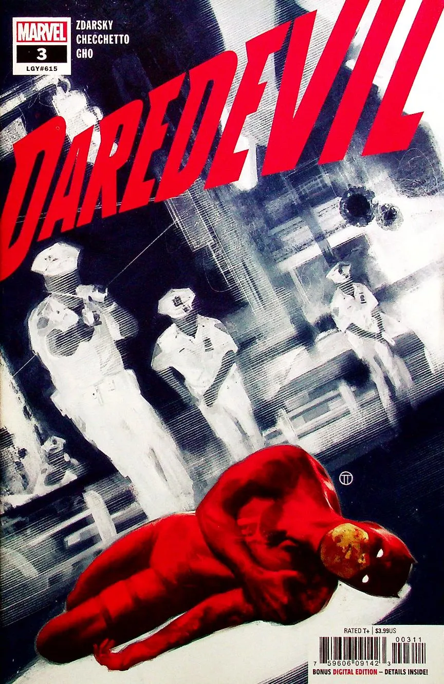 Állapot: Fine (FN)Sorozat: Daredevil, Vol. 6Szám: 3Borító: 3ABorítórajzoló: Julian Totino TedescoÍró: Chip ZdarskyRajzoló: Marco ChecchettoKiadó: Marvel ComicsKiadás éve: 2019Színezés: színesEredeti ár: $3.99Kiadás formátuma: FüzetOrszág: USANyelv: AngolMűfaj: Super-HeroesSorozat típus: sorozatSorozat hossza: 36 részKorszak: ModernOldalszám: 32